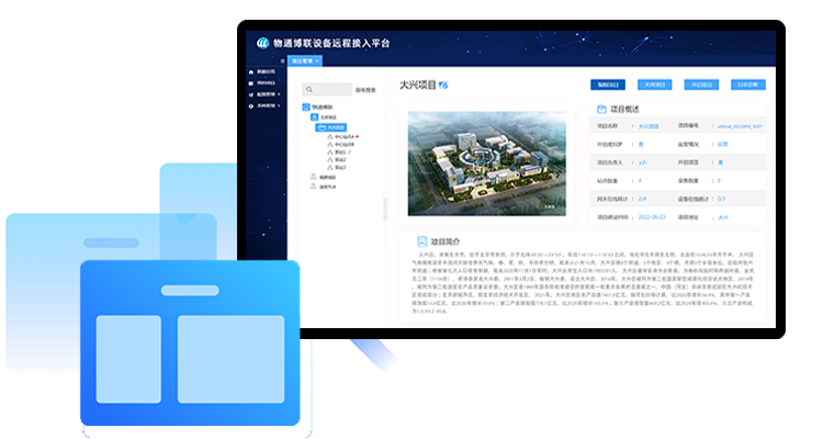 实现对实时监控项目的管理,包含项目的名称,编号,运营情况,负责人,站点数量,设备数量,在线统计,项目介绍进行管理;维护项目的在线通道,查看项目通道的日志。
