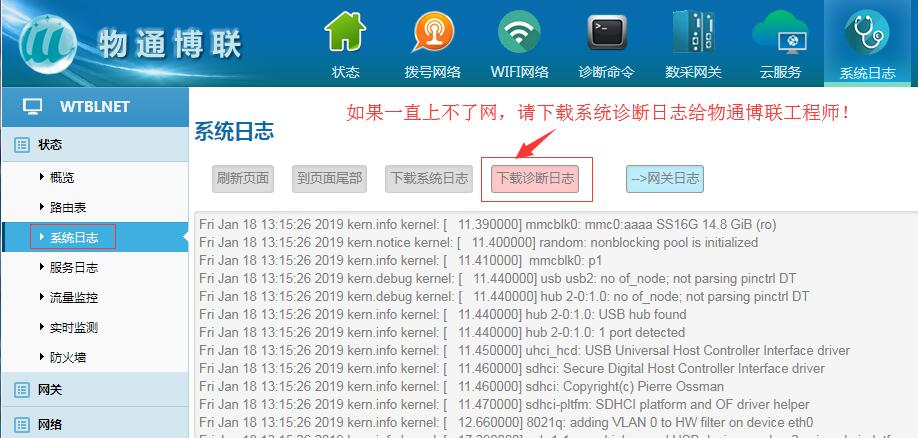 如果顺利获得如上设置还是没办法上网,请下载诊断日志,然后发给G22恒峰集团 G22工程师;我们工程师会根据系统日志诊断问题并提出指导建议。