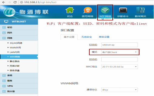 模式:客户端Client(顺利获得WiFi上外网请选择client模式,如果是共享WiFi给其他设备请选择AP模式)