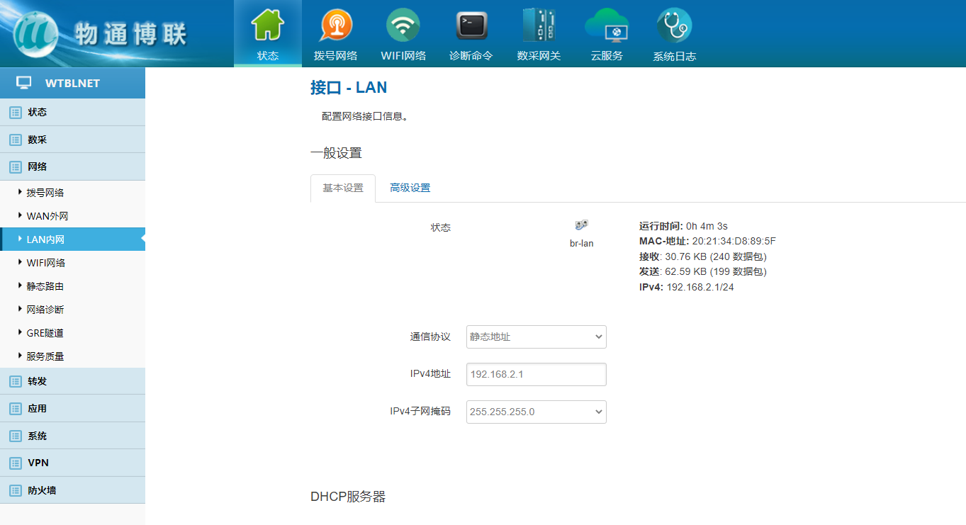 下载中心 视频中心 常见问题 售后服务 工业网关 设备快线 数据云平台 联网设备 问答百科 如何修改工业智能网关的LAN口IP地址? 时间:2022-10-26 09:06:09 点击:4966 关键词:工业智能网关,LAN口 问题:如何修改工业智能网关的LAN口IP地址? 回答: (1)电脑直连网关,确保电脑与网关处于同网段或者自动获取 浏览器里面输入192.168.2.1 (2)登陆网关配置界面 默认用户名/密码:admin/123456 (2)选择网络——Lan内网——更改IPV4地址、子网掩码,保存应用 (3)注意电脑本机IP地址是否与更改地址处于同网段(自动获取需重新拔 插网线) (4)浏览器输入更改后的IP地址登陆到网关配置界面即修改成功 上一篇:工业智能网关和DTU有什么区别吗? 下一篇: 工业智能网关需要另外配4G路由器吗?