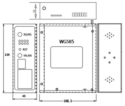 | 指示灯 | 2*4指示灯 | POWER电源灯(红)、STATUS状态灯(绿)、WARN警告灯(黄)、ERR错误灯(红)、4G信号强度灯(绿)*3、WiFi指示灯(蓝) |