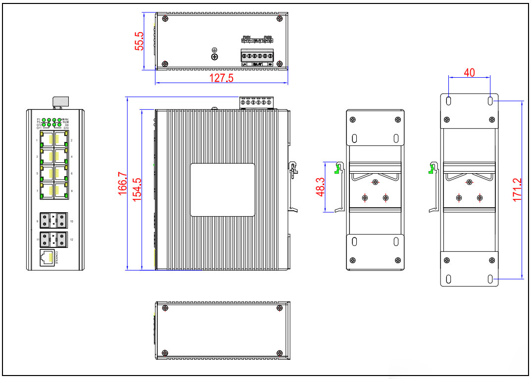 | 电源 | 输入电压:DC12/24V,AC/DC85~265V可选 支持失电告警功能(DC12V/DC24V) 支持电源防反接保护 工业凤凰端子接线 |