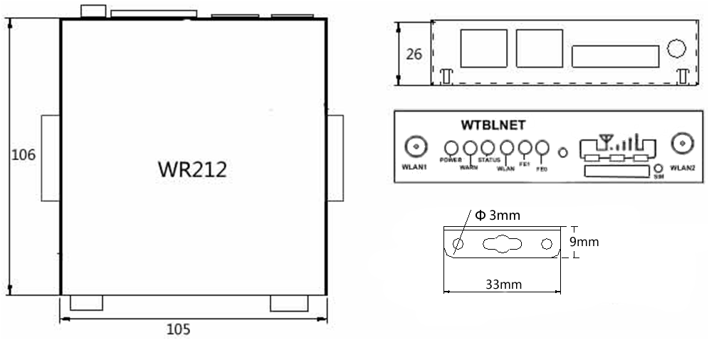 示例 WR212-LL07-232  (两网口,4G CAT4全网通,232串口)