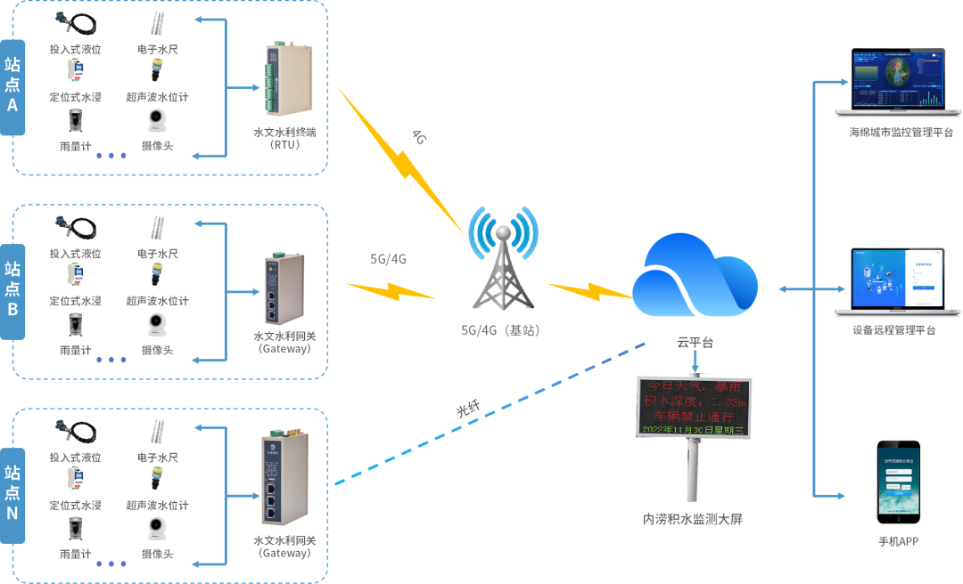 针对上述痛点,G22恒峰集团 G22以无线通信网关为核心,构建道路积水监测预警智能化系统,顺利获得物联网技术实现积水深度实时监测、多级预警推送、远程调控及数据分析,为城市管理部门给予“感知-预警-处置”全流程智能化解决方案。