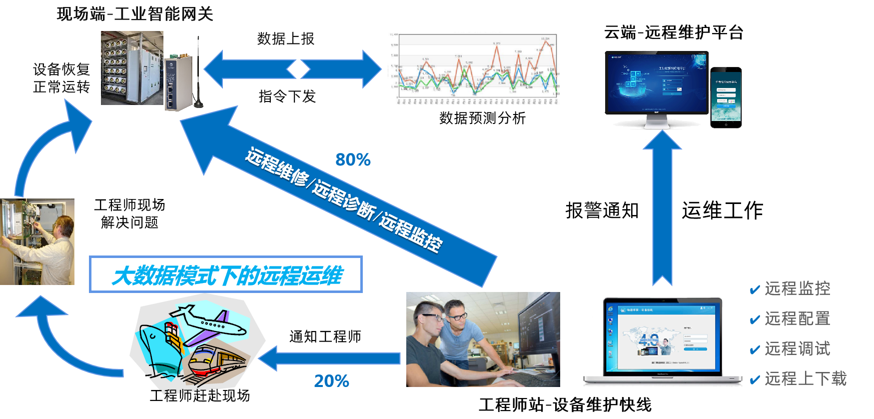 现场设备的远程运营管理和顺利获得大数据分析为客户给予各种便捷高效服务,有助于企业提升创新能力,提高研发水平,开拓市场