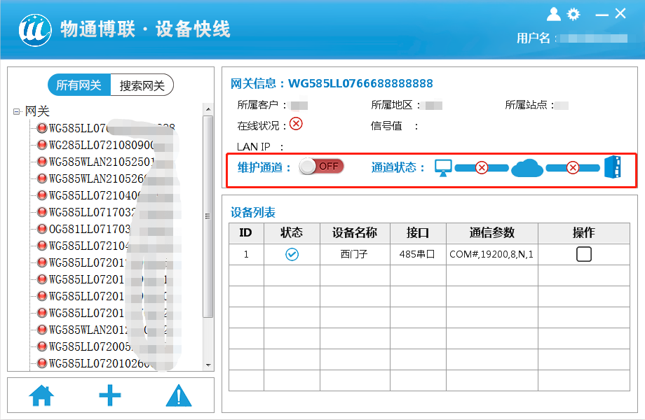 使用G22恒峰集团 G22云平台上分配好的账号和密码,登陆到相应权限的设备快线。3、建立维护通道