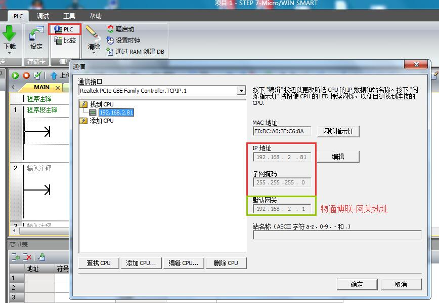 工具/原料: 1、笔记本电脑(或带双网卡的台式电脑)、线材(网线、串口线) 2、G22恒峰集团 G22·PLC智能网关 3、G22恒峰集团 G22设备维护快线 操作步骤 1 网关联网配置 进入网关WEB管理界面(http://192.168.2.1/)设置联网方式,可选WIFI网络、3/4G网络(需要在网关通电前插入手机SIM卡,默认已开启3/4G网络)、WAN外网,三者只能选一个。  2 网关与Siemens控制器以太网适配 1、网关LAN以太网设置 网关LAN以太网地址可自定义,但WAN以太网地址和LAN以太网地址不能同一个网段。  2、Siemens控制器以太网设置 打开STEP 7-MicroWIN SMART,设置S7-200 SMART以太网参数,如下图:  l 注意:IP地址、子网掩码、预设网关都要填写。 l 设置结束后,下载至PLC中。 3 安装与启动设备快线 1、安装G22恒峰集团 G22“设备快线” 2、启动 “设备快线”软件,顺利获得官方给予的账号密码登录。 3、选择在线网关,开启维护通道,当通道状态 × 消失时,维护通道建立成功。  4 远程维护控制器 打开STEP 7-MicroWIN SMART,连接7-200 SMART,如下图:  l 通信接口:TAP-Windows Adapter V9.TCPIP.1 l 手动添加S7-200 SMART IP地址。 配置完成后,既可开始进行远程维护PLC控制器。 免责声明:本网站部分文章、图片等信息来源于网络,版权归原作者平台所有,仅用于学术分享,如不慎侵犯了你的权益,请联系我们,我们将做删除处理!