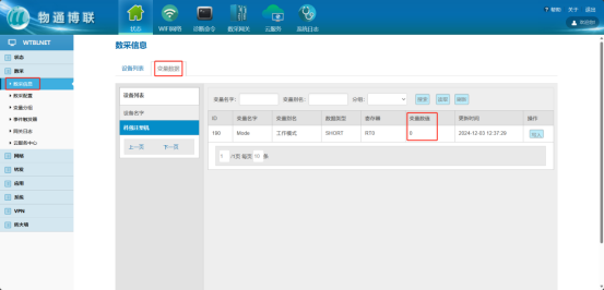 等待右下角弹出成功提示框后,点击“数采信息”->“变量数据”,即可在“变量值”一列查看采集结果。5、错误诊断