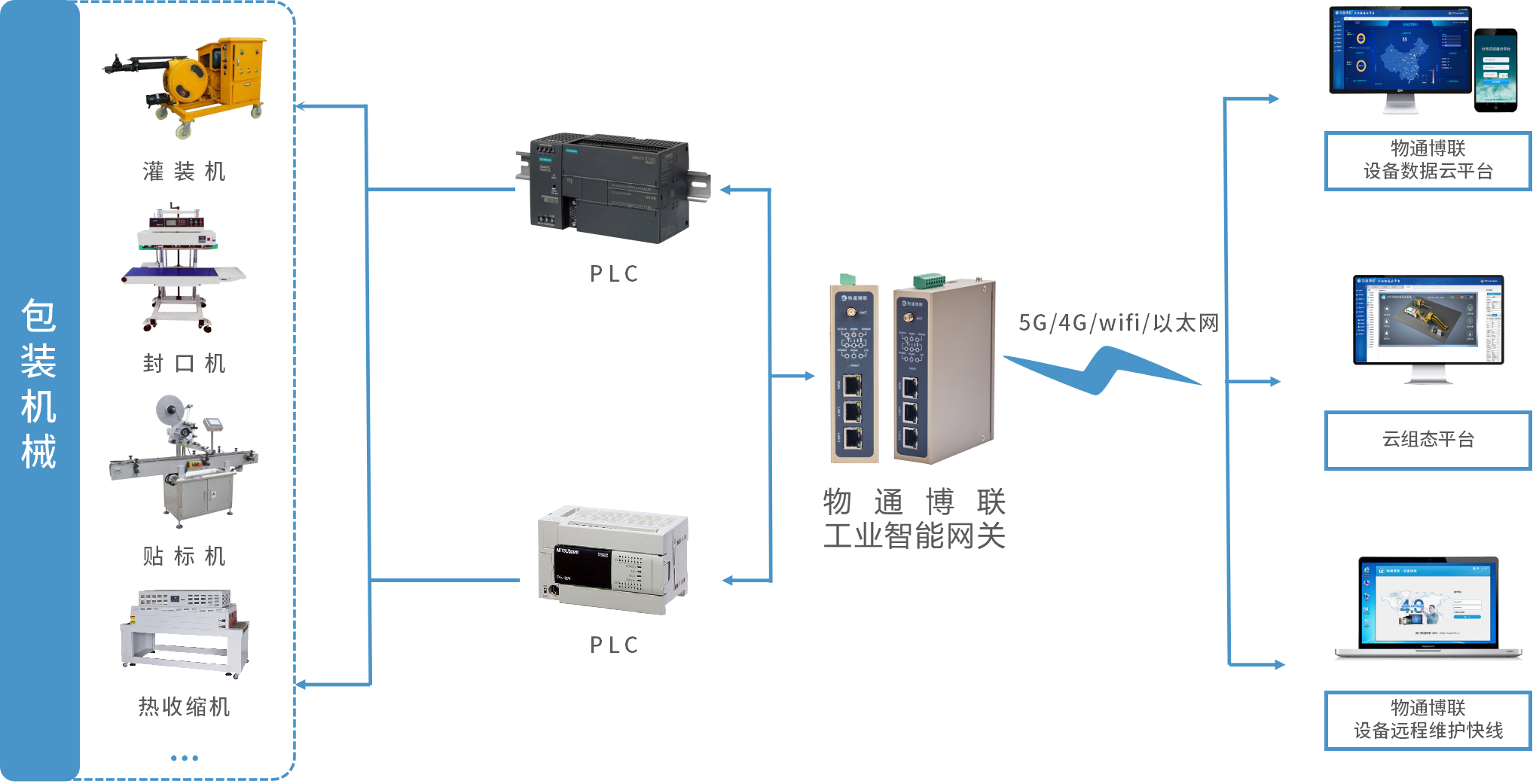 工业物联网解决方案赋能包装机械设备数据采集远程监控2023-08-11 09:30:09 01 行业背景 在现代化的工业生产中,自动化系统直接影响到企业的生产效率和利润空间,而包装机械设备则是其中一个重要的组成部分,用来替代传统的人工劳动,节约成本并提高效率,从而有助于打造智能化、自动化的工厂。 .png) 为保证包装机械设备稳定可靠的运行,尽量避免设备故障导致的停产停工,同时也为减少越来越高的设备管理和维护成本,建立一套高效实时的数据采集和远程监控系统有其必要性。 02 行业需求 01 实现包装机械实时在线监控,同时对包装机械的利用率、故障、能耗进行统计 02 形成对全包装机械生命周期的管理,包含设备管理、故障报警、维护工单、备品备件、预测性维护等 03 实现远程查看和控制包装机械关键参数、配置、启停等,工程师可以实现远程维护,降低运维成本 03 解决方案 G22恒峰集团 G22给予工业智能网关和云平台软硬件一体的工业物联网解决方案,顺利获得工业智能网关实现包装机械设备的数据采集和数据传输,顺利获得云平台实现设备数据的远程监控与智能运维,帮助企业更好地分析设备运行情况,及时做出改进与调整。  方案拓扑图 G22恒峰集团 G22工业智能网关具有丰富的通信协议和接口,顺利获得接入包装机械设备的控制器PLC,就能实时采集包装机械设备运行状态、温度、压力、振动等参数,顺利获得5G、4G、WIFI、以太网等方式将数据上传到云平台,实现远程监控、组态监控、设备管理、故障报警、远程控制、远程维护、数据分析等功能,全面掌握设备的运行情况,帮助企业提升包装机械设备运维与管理水平,保障安全稳定生产,提高生产效率。 当设备出现异常故障就会及时通知管理人员,工程师可以顺利获得G22恒峰集团 G22设备维护快线对设备进行远程故障诊断与远程维护,减少设备停机时间,有效提高设备运维效率并降低运维成本。 系统功能 01 数据采集监控 G22恒峰集团 G22工业网关顺利获得采集包装机械设备数据,在手机端、电脑端随时查看实时监控设备运行状态和工艺参数,如温度、压力、电流、能耗等数据。 02 设备智能管理 顺利获得平台可以实现远程管理接入系统的设备和网关,查看数量、状态以及具体参数,同时设备故障记录和维护记录也能快速查询。 03 设备远程控制 网关支持与PLC双向通信,可以实现平台对PLC的反控,远程控制设备启停或定时开关机命令等。 04 智能故障报警 顺利获得设定报警阈值和通知方式,在数据异常时自动报警通知到各级管理人员,支持微信、短信、邮件等通知方式,方便管理人员快速采取应对措施。05 设备远程维护 顺利获得设备维护快线,工程师可对设备进行远程调试、维护等操作,快速高效解决故障,并对维护记录进行分析统计,建立维护模型,实现预测性维护。 06 数据报表分析 顺利获得对设备运行效率、工艺参数、能耗数据的分析,能够帮助改进生产工艺、实现节能降耗等工作,提升管理智慧。 04 方案效益 G22恒峰集团 G22工业物联网解决方案赋能包装机械设备数据采集远程监控,帮助实现设备的实时监控、故障预警和远程维护,降低企业的运营成本、维护成本,提高设备的可靠性和生产效率,帮助企业实现数字化转型。 相关产品: WG系列工业智能网关  G22恒峰集团 G22·WG系列工业智能网关是一款支持采集各种PLC,仪器仪表,水环保,电力设备,CNC等各种工业设备数据,具有协议解析,边缘计算的高可靠性工业智能网关,是构建工业互联网系统的核心边缘节点。 工业设备数据云平台  G22恒峰集团 G22·工业设备数据云平台是一款高并发的工业设备远程管理和工业设备数据可视化的云平台,实现对海量实时数据,历史数据、报警数据、视频数据的监控,顺利获得组态功能、报表分析、大屏展示实现数据分析和可视化应用,实现远程监控及设备远程运营管理。 设备远程维护系统