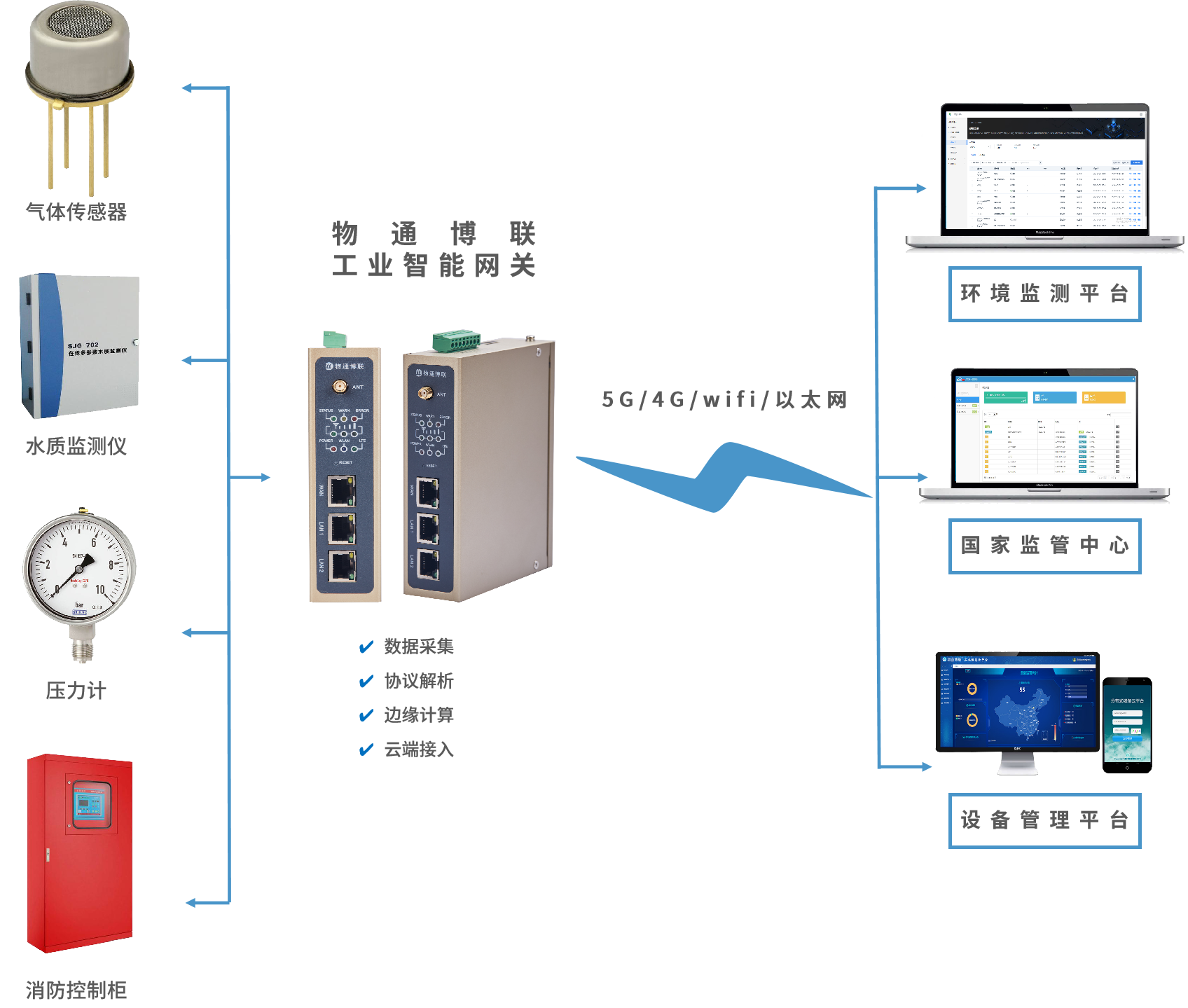 【智能工厂】环境监测安全预警系统解决方案2023-10-12 13:46:49 【01 行业背景 随着现代工业化开展的不断加快,工厂环境监测越来越受到重视。除了满足国家监管和环境保护的要求,实现工厂环境监测也能对员工安全负责,创造良好健康的工作环境,已经逐渐成为建设智能工厂的重要条件之一。  针对工厂内危险气体、废水、管道压力及消防控制柜等监控需求,G22恒峰集团 G22给予基于工业智能网关的数据采集方案,实现工厂环境的实时在线监测和安全预警,从而保证及时控制保障工厂环境的安全健康,是改善和提高工厂环境质量的有效方式。 02 痛点需求 01 数据类型多样,集成难度大。工厂内的危险气体、废水、管道压力以及消防控制柜运行状态都是需要监管的对象,需要将其数据采集统一接入到监管平台中。 02 缺乏在线监测手段,异常故障无法得知。各种环境参数无法实时在线监测,出现异常也无法快速感知并得到控制处理,需要建立准确及时的异常报警系统。 03 应急管理效率差,安全风险大。出现险情需要派人在现场进行操作,人员安全难以保障需要建立无人值守与远程控制联动系统,远程启停消防设备。 03 解决方案 G22恒峰集团 G22的推出环境监测安全预警系统,将工厂内的危险气体传感器、废水监测仪、管道压力计及消防控制柜PLC接入到工业智能网关中,由工业智能网关采集各项环境参数和设备数据并上传到上位机或云平台进行监控和展示,进而实现工厂现场和国家监管中心的联动监管和实时控制,保证现场环境安全稳定和可控。 在监管平台中,对工厂各个监测点的环境信息、设备信息都能实时展示在监控大屏上,顺利获得对设备进行有效的管理和控制,结合故障自动报警功能,在故障异常时及时采取措施,能够有效保证工厂生产工作的稳定性和安全性。  拓扑图 系统功能 01 数据采集 G22恒峰集团 G22网关给予多个串口网口和多种上网方式(5G/4G/WIFI/以太网等),内置丰富协议,支持采集危险气体传感器、废水监测仪、管道压力计及消防控制柜PLC等设备数据。 02 实时监测 现场电压、电流、工作温度、管道压力、气体浓度以及水质参数等数据都能实现实时监测,给予可视化图表图表,随时查询实时数据和历史数据。 03 智能告警 支持自定义报警阈值和通知方式,当采集到危险参数时和数据超出阈值等情况,自动顺利获得微信、邮件、短信、电话等方式进行通知管理运维人员,快速联动监管人员采取措施。 04 设备管理 接入网关的设备可以统一查看管理,获取设备信息、项目信息、运行信息等,快速查看厂各监测点位的工作状态,发挥全局视角统筹管理作用。 05 远程控制 借助手机端或电脑端,管理员可以对设备进行远程启停、定时开关等操作,提高管理效率和操作水平,增强应急响应能力。 06 数据分析 各个监测点位的环境参数都能集中一起进行分析管理,顺利获得数据比对、趋势分析、报警管理,可以评估工厂安全系统的工作性能与风险水平,合理完善优化。 04 方案效益 各类化工厂、炼油厂、天然气加工厂及钢铁厂等场景更需要建立环境监测安全预警系统,能够加强生命安全建设,提高工作生产的安全性与生产效率,减少事故发生的风险,保护员工和资产的安全。